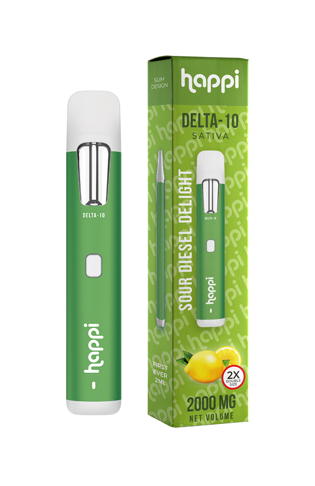 Happi Premium Feel Good Delta-10 2mL Disposable Vape Pens are created by Kush Burst and Pure Clear. They each come with Premium Quality Delta 10 THC Extracts containing about 2000MG per disposable vape device. Happi Delta 10 Disposables comes in 8 different flavors and strains to curb your appetite.